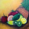 Dit schilderij staat symbool voor een gezonde levensstijl waarin ons “tussendoortje” geen chocoladereep of een andere dikmaker is, maar een heerlijk stuk vers fruit (onderdeel van een drieluik, apart verkrijgbaar). Ideaal voor in de eetkeuken! LAURA en JACQUELINE